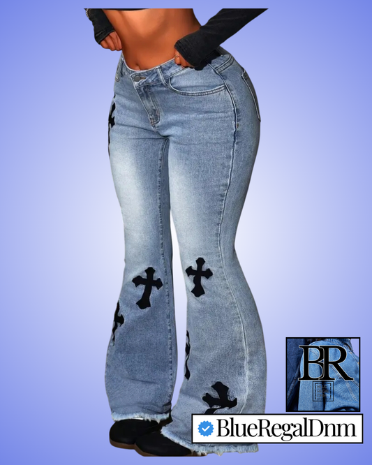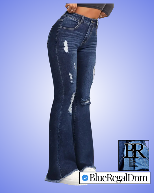 BlueRegalDnm Elegant Flare Leg Denim Jeans for Women
